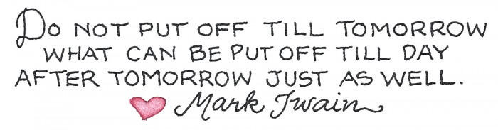 This seems to be my philosophy lately. It seems these summer days have turned into the dog days of summer. My ambition is nil. I’ve turned into a complete cat, laying around and resting most of the time. Oh, things get done. It’s just that there is no hurry. Only the most menial of tasks are done when necessary. The rest are either put off for another day or ignored completely.