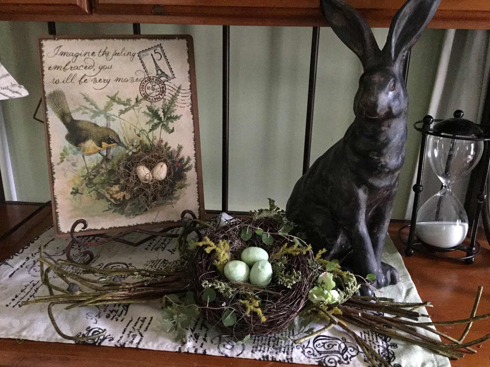 Hi, Peggy! I see you are home safely. I love your spring vignettes! It's good that Chris and Wendy are with you for the weekend! Enjoy!
