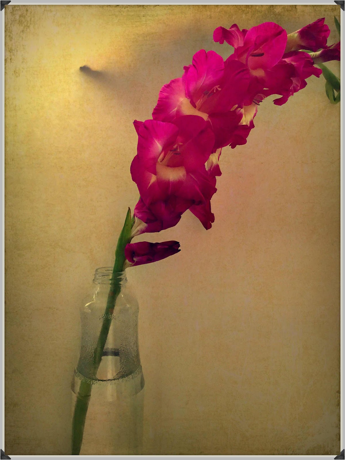 This glorious gladioli was a gift from Linda Coons, Wendy’s mother. We had the pleasure of visiting Linda and Rich at their farmhouse in York, Pennsylvania on Saturday. They had purchased this home in the sixties as a run down farm but have made it their own with personal touches such as boards from an old corn crib on the walls of the dining room and a solar heating room in the back end of the house which provided a lovely place to sit and read during the winter. The large property included a big barn and many flower and vegetable beds. I loved touring the grounds with Linda as she pointed out some special flowers and a beautiful patch of asparagus. After chatting a while Linda and Rich took us to a local diner and we enjoyed a delicious dinner. We went back to Linda’s where she served us our dessert....vanilla ice cream with berries. The strawberries, blueberries, raspberries, and blackberries were all picked by Rich from their own bushes. As we finished dessert a huge rainstorm came up so we sat with the lights dimmed and the party lights on and talked and talked. As the rain let up Chris drove us back to his house and we played a game of Five Crowns and another of Pictionary before bedtime. It was such a lovely day