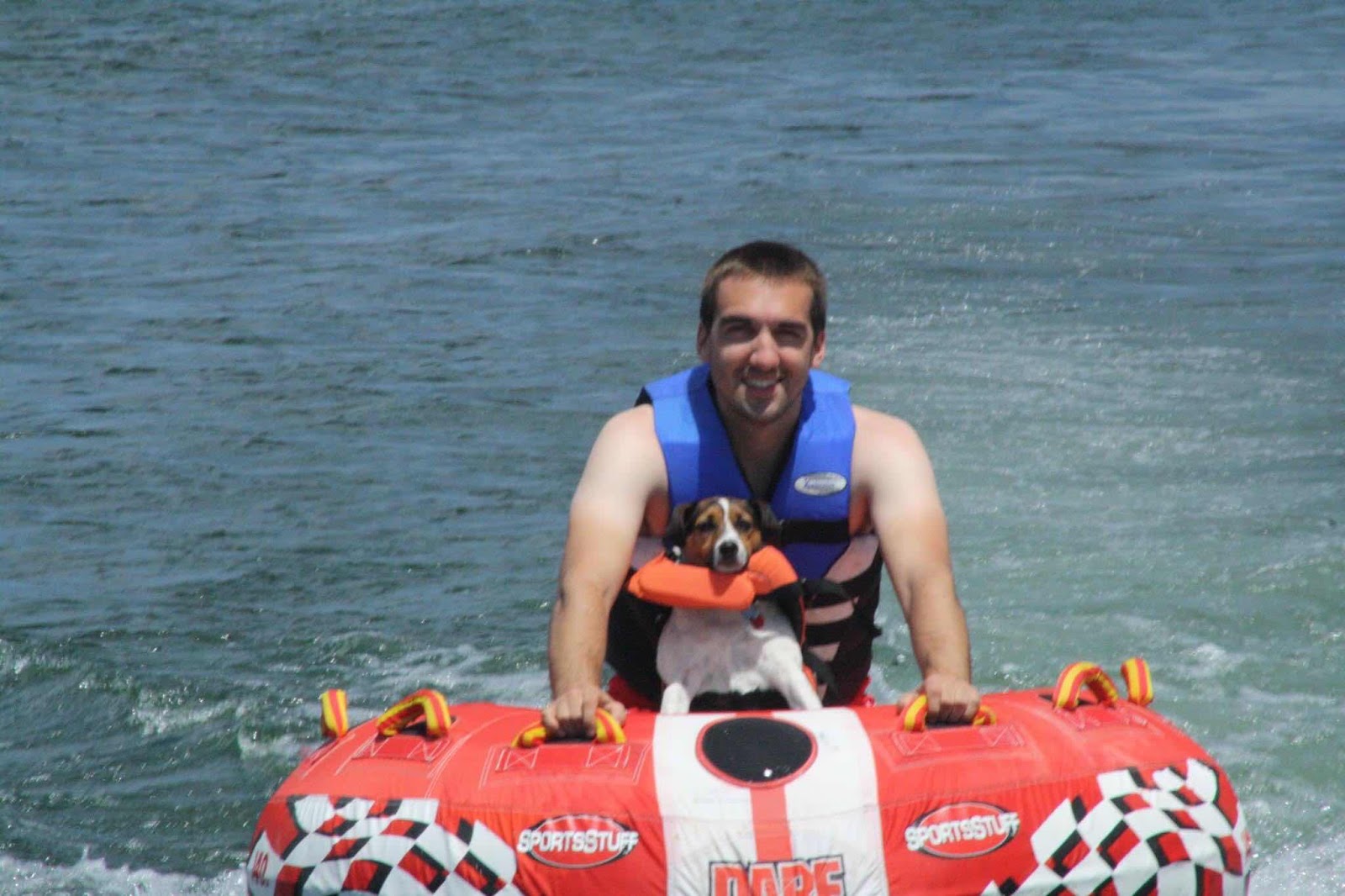 I love the pop ups that FAcebook gives you so you can look back on the years. This picture popped up yesterday. I remember that day so well. Chris and the boys were visiting and we took the boat out. We always went over to the Allegheny Reservoir. We pulled the tube behind the boat as the boys took turns riding. And of course Sadie went with us. She was more human than she was a dog and never wanted to miss out on an adventure. She absolutely loved the water and when Dan went into the tube she jumped right in too. We always had a life jacket for her. Not because she couldn’t swim but because she would swim so long we were afraid she would tire out and drown.  Looking back on this picture reminds me of how much fun we used to have. And how I miss my dog.