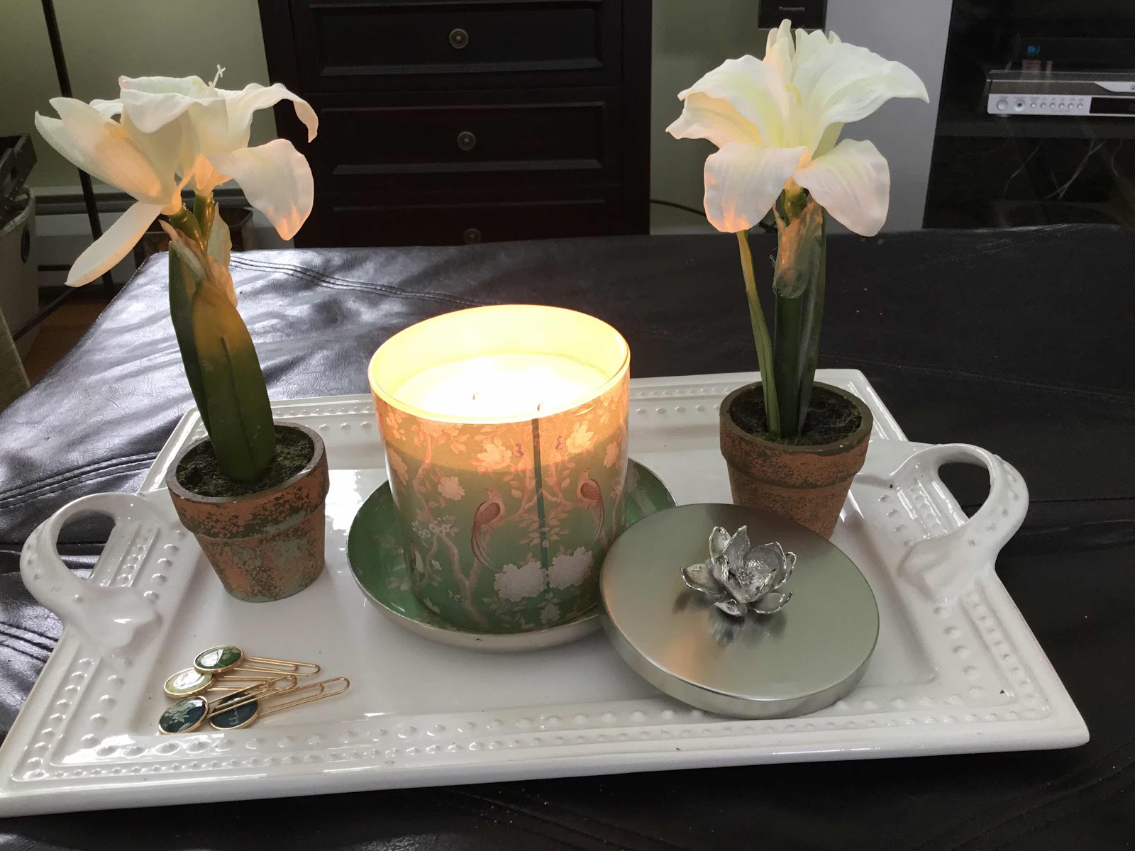 This year the delay in the mail has really disappointed a lot of people. My packages to my sister still haven’t completely arrived yet. I was thankful that my family opened gifts when they were here in November. Today I did get a package from one of my sisters. The candle above was one of the gifts along with those fancy paper clips.